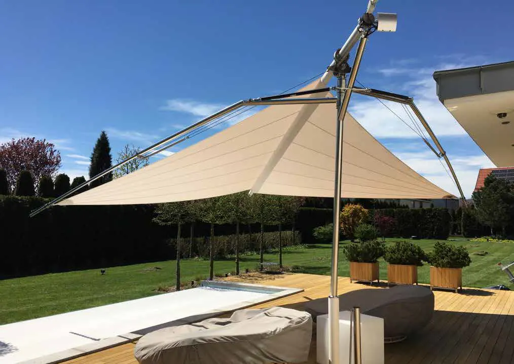 La rotabilità di 270 gradi evoca il Ombrellone a vela di 30 m² e protezione solare di 75 m². Se il vento diventa troppo forte, il sistema del braccio si piega automaticamente e la vela si rannicchia. Che si tratti di un giardino, un patio o una terrazza, la tenda da sole a vela può trasformare l'ambiente esterno in uno spazio accogliente e elegante.