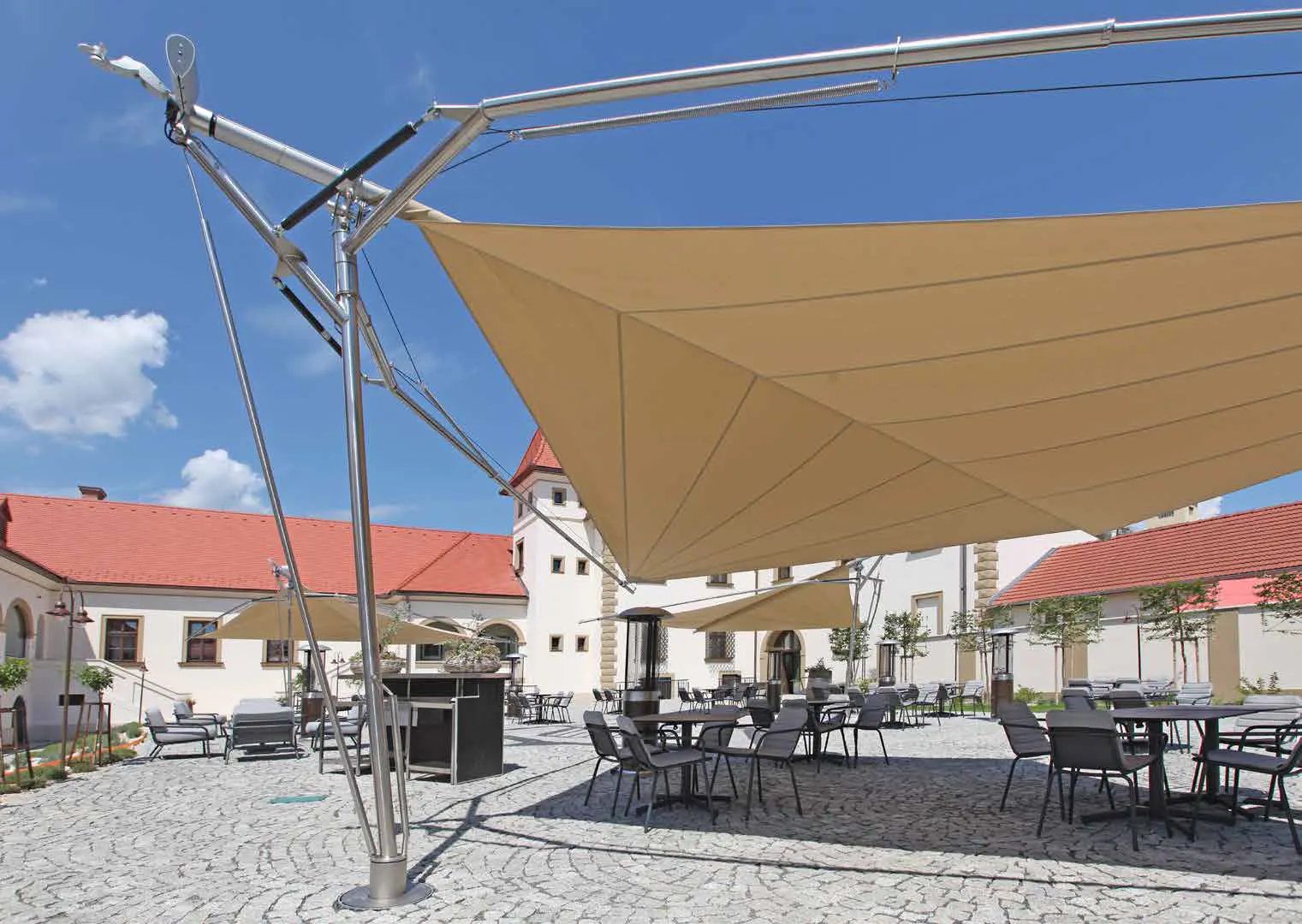 La rotabilità di 270 gradi evoca il Ombrellone a vela di 30 m² e protezione solare di 75 m². Se...